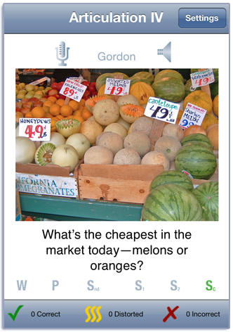 This app is based on the Articulation IV game from LocuTour. It teaches receptive and expressive language skills while children practice their good speech.